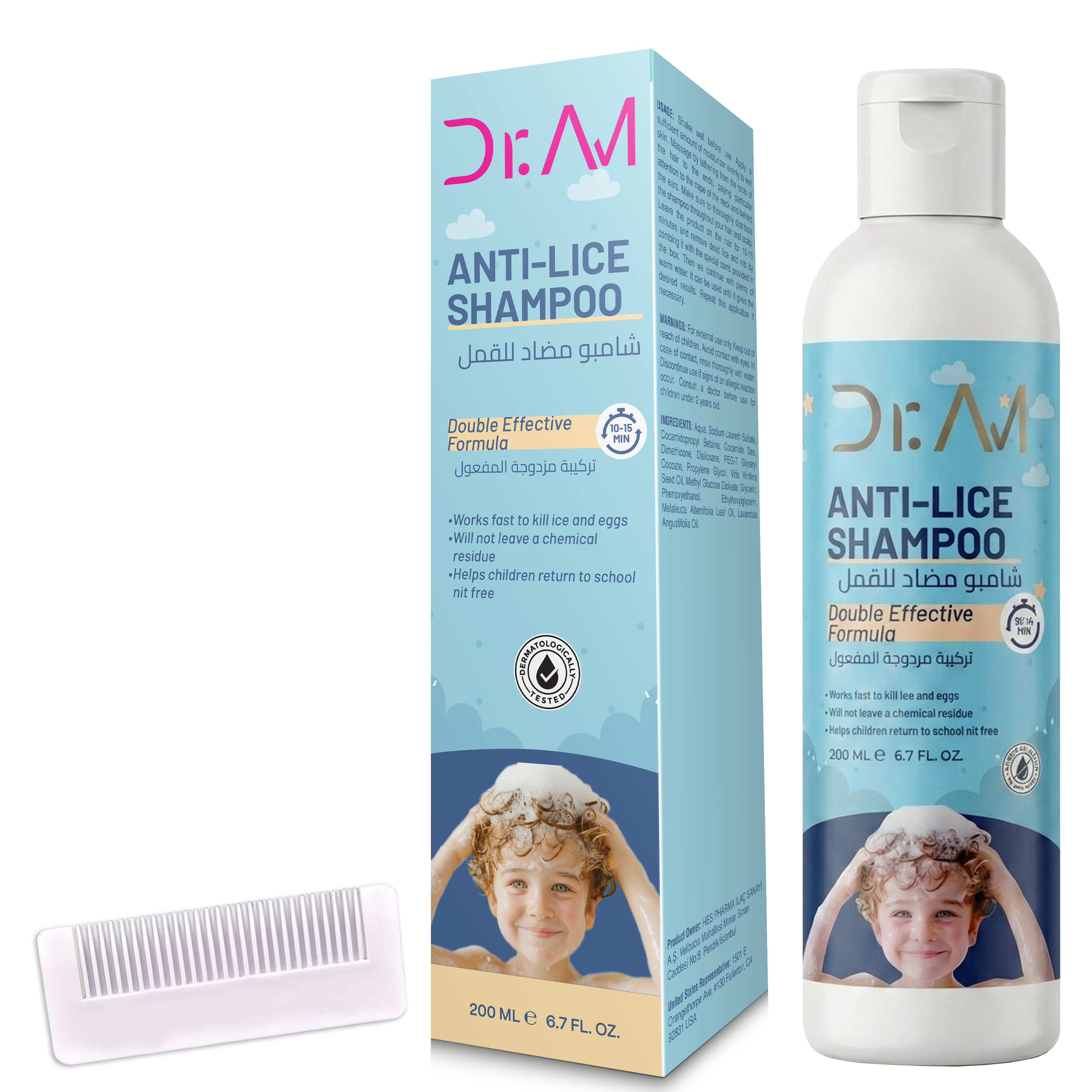 –  Removal of lice and their nits when used with a fine comb.